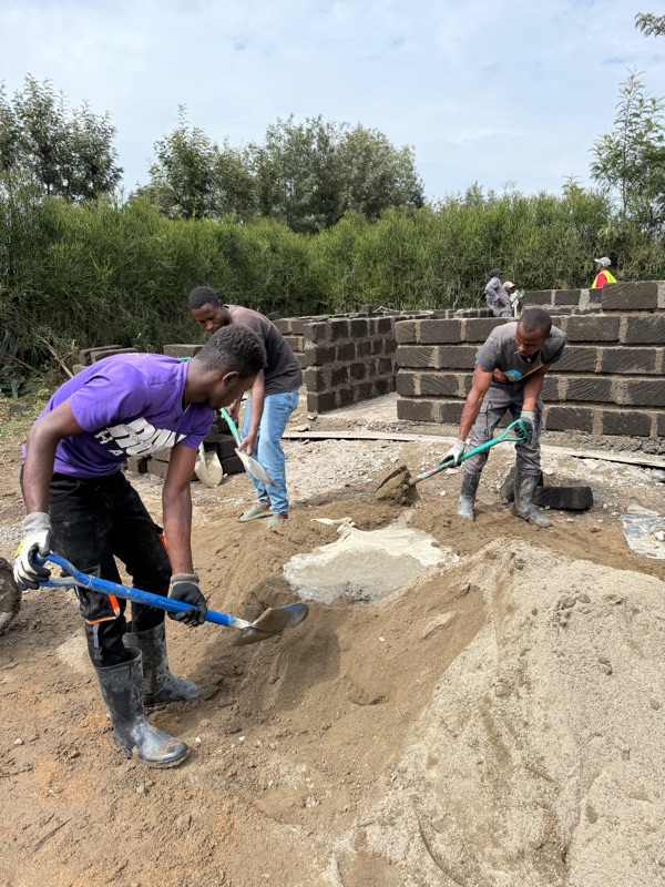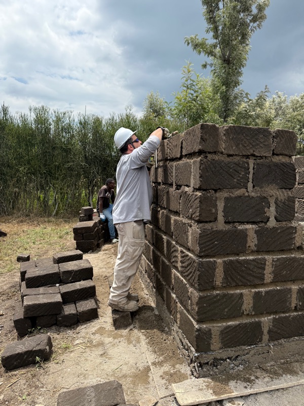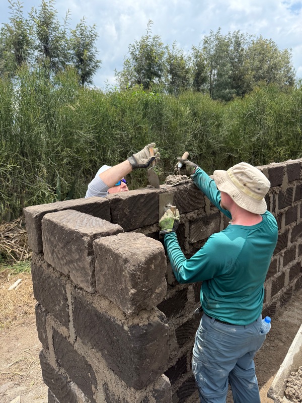 Following lunch, we picked up right where we left off — finishing the wire preparation and continuing to lay bricks. And by day’s end, we did it: all four walls of the house now stand nine bricks tall. The full structure is visible — with space carved out for windows and doorways, and the shape of the home rising clearly from the foundation. The walls are up. The shape is clear. The space is real. It’s incredible what can be built in such a short time when people come together with a shared purpose.